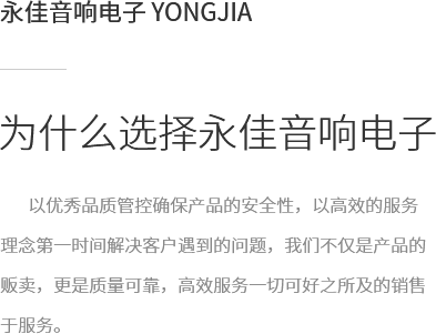 拉薩永佳音響電子有限公司 拉薩永佳音響電子有限公司坐落于美麗富饒的圣城拉薩,公司前身為拉薩昊成音響電子銷售有限公司,注冊(cè)資金為300萬元,成立于2010年3月公司地址位于西藏拉薩市貢布塘南側(cè)1號(hào)薩博廣場(chǎng)4-5、4-8號(hào)。拉薩永佳音響電子有限公司主營專業(yè)舞臺(tái)音響設(shè)備、會(huì)議音響系統(tǒng)設(shè)備、公共廣播音響系統(tǒng)設(shè)備、網(wǎng)絡(luò)及監(jiān)控設(shè)備、多媒體教學(xué)設(shè)備、多媒體投影機(jī)、幕布、弱電線材、辦公設(shè)備、LED液晶顯示屏品種齊全、服務(wù)效率、拉薩